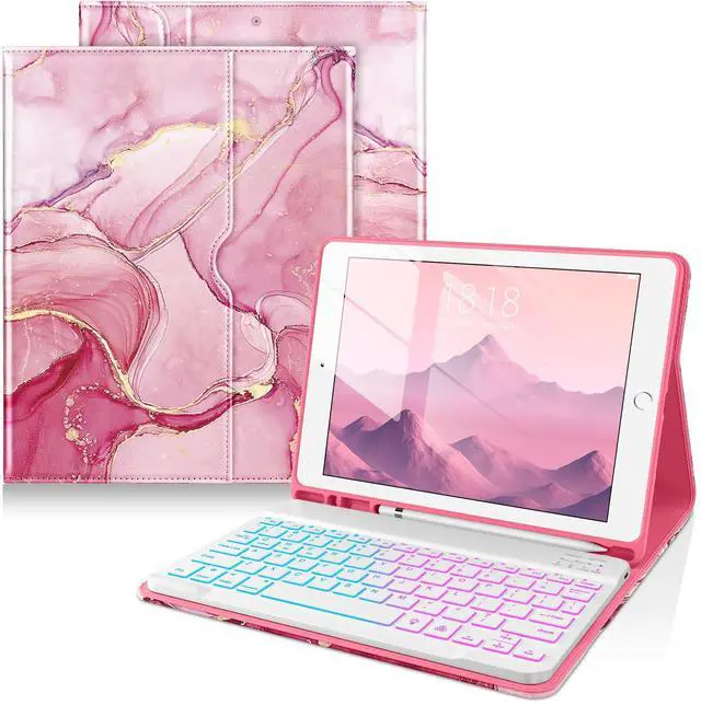 7 Colors Backlit KeyboardThis for iPad 9th generation case with keyboard is designed with laser-etched backlit keys that allow 7 vibrant colors to shine in the dark. Ergonomic and mechanical scissor keys with rebound feature to reduce noise