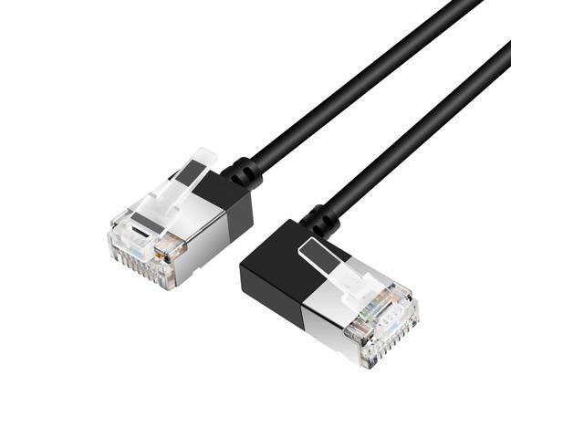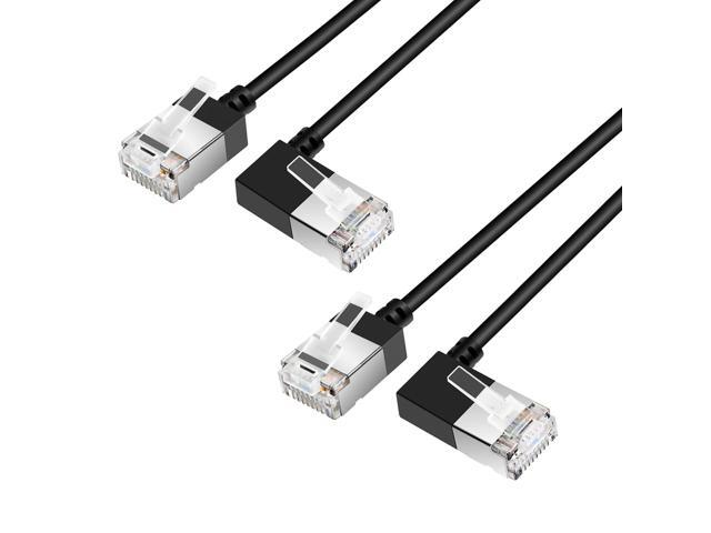 Dutevolns Ultra Thin Cat 6A Ethernet Cable 25 Feet 2Pack, 90° Degree Right Angled, 10Gbps High-Speed Network Slim Cable, 550Mhz, Rj45 Flexible Ethernet Cable, for PC, Router, Ps4/5 (Black)