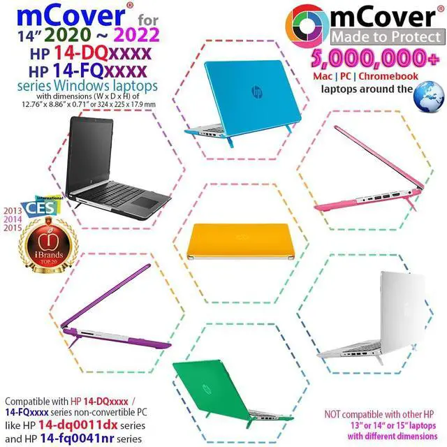 Made of USA-made high-quality translucent polycarbonate material which is shatter-proof and Will protect your 2020 ~ 2022 14"(diagonal) HP Laptop 14-DQxxxx / 14-FQxxxx series all around