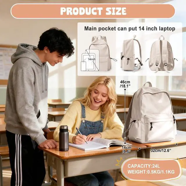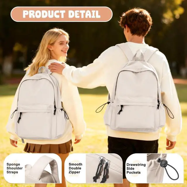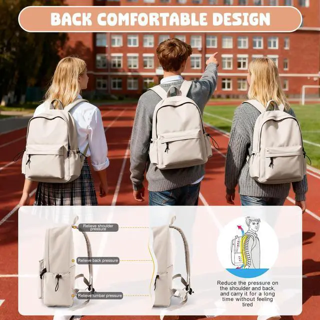 VECAVE School Backpack Beige Waterproof Bookbag Casual Lightweight Travel Rucksack Daypack Backpacks for Men Women College High School Bags backpack for Boys Girls Teens