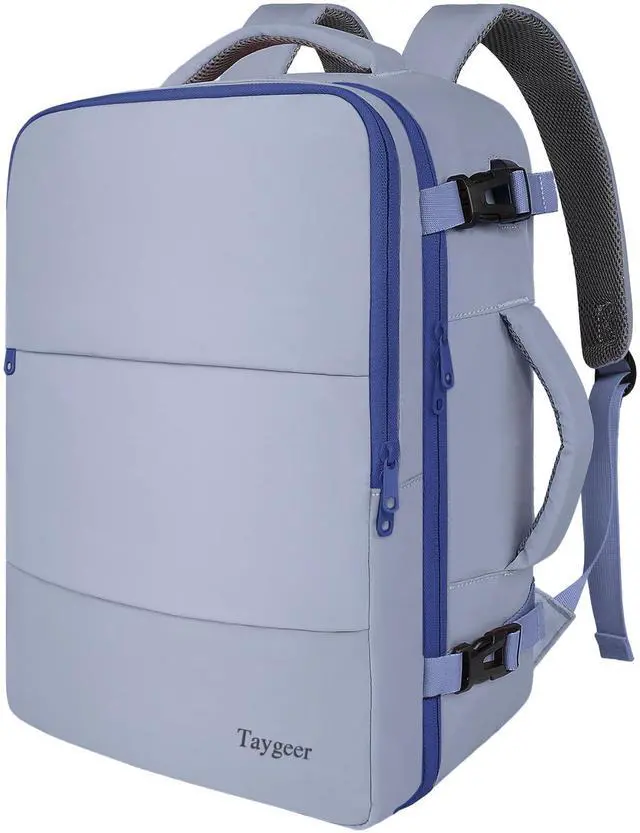 Taygeer Large Travel Backpack for Men Women, 35L Carry On Backpack Airline Approved, Personal Item Travel Bag with USB Charging Port & Shoe Compartment, Laptop Backpack for Gym Hiking, Gray Blue