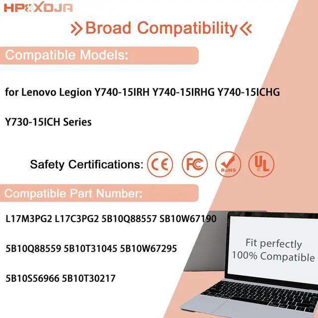 Compatible withL17M3PG2 battery. Replacement for Lenovo Legion Y740-15IRH Y740-15IRHG Y740-15ICHG Y730-15ICH Series