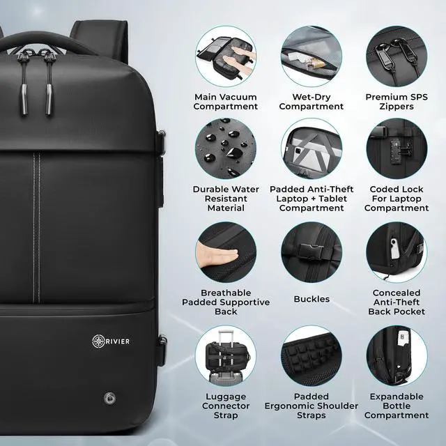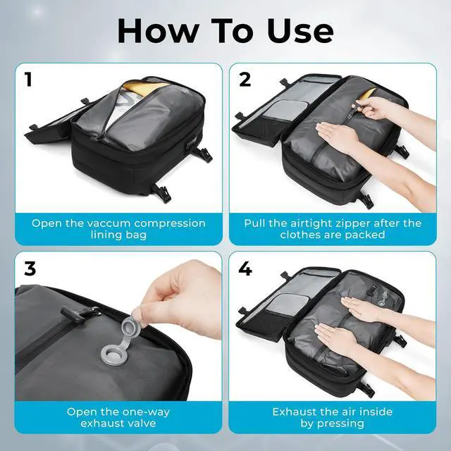 Innovative Vacuum Compression Technology: This travel backpack features a unique built-in vacuum compression pocket, enabling you to maximize your packing space. Reduce the volume of your clothes and other items, making packing more efficient and eliminating the stress of overpacking. This integrated vacuum system ensures you can easily compress your belongings, making it ideal for travelers who need to optimize their luggage space