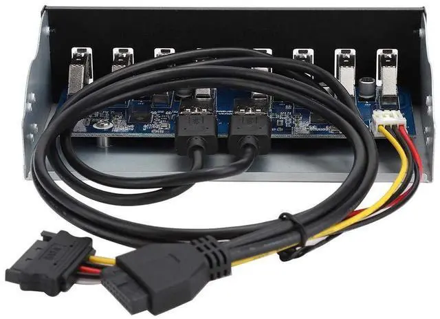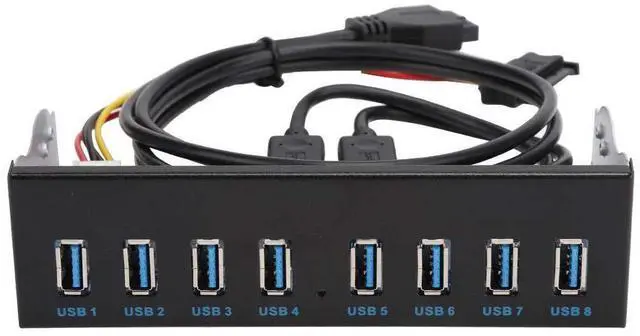 1. Just plug it into the motherboard through a 19PIN socket on the panel, and it will lead to eight front USB 3.0 interfaces, which are installed in an idle optical drive position.