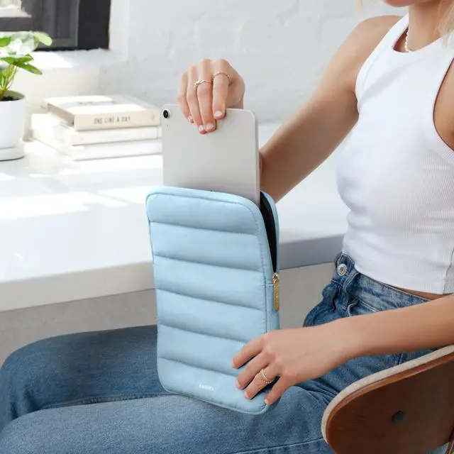 FITS YOUR BAG: Our soft puffer material is compressible, so it wont take up room in your backpack or tote. Thats why this is the perfect tablet bag for women and men on the go