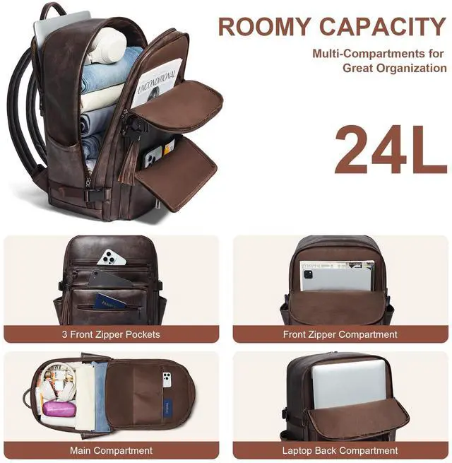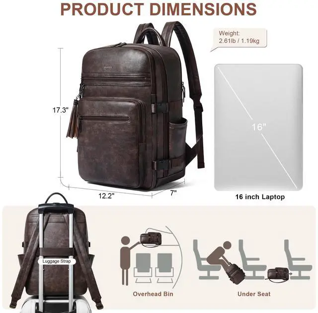 Shrrie Laptop Backpack for Women, Vegan Leather Backpack Work Computer Backpacks fits 16" Laptop, Water Resistant Teacher Nurse Casual Daypack for Weekender Camping Travel, Two-toned Coffee
