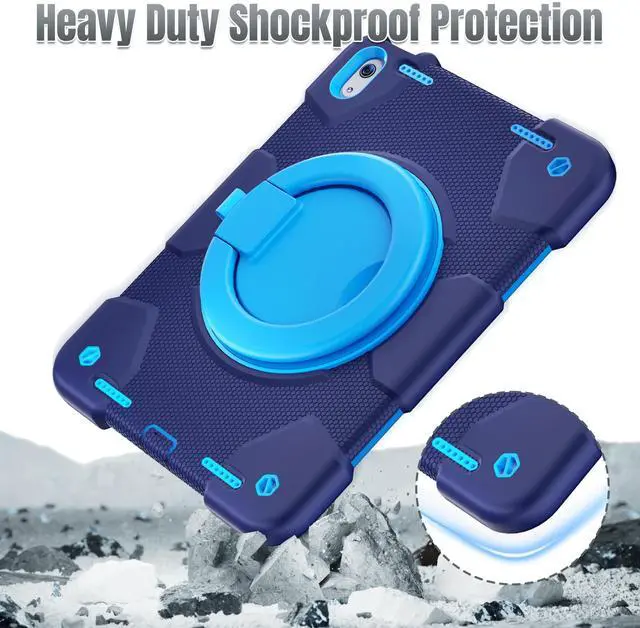 Andnary Case for iPad (A16) 11th /10th Generation 11/ 10.9 Inch 2025/2022 with Screen Protector/360° Rotate Stand/Shoulder Strap/Pencil Holder, Shockproof iPad 11th/10th Gen Cover (Navy+Blue)