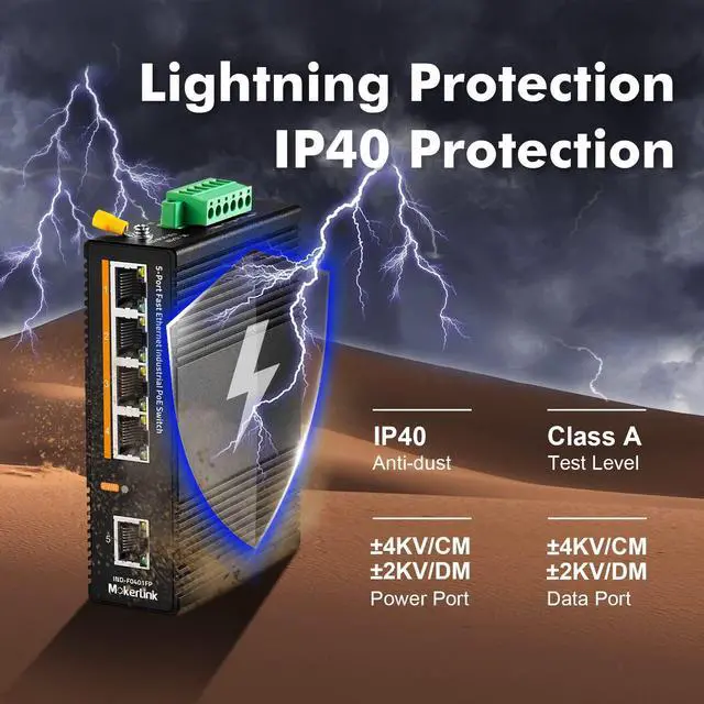 IP40 protection grade, working temperature -40~75°C(-40~185°F), super robustness, anti-lightning, anti-static and anti-overload protection, adapt to various harsh environments