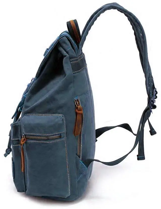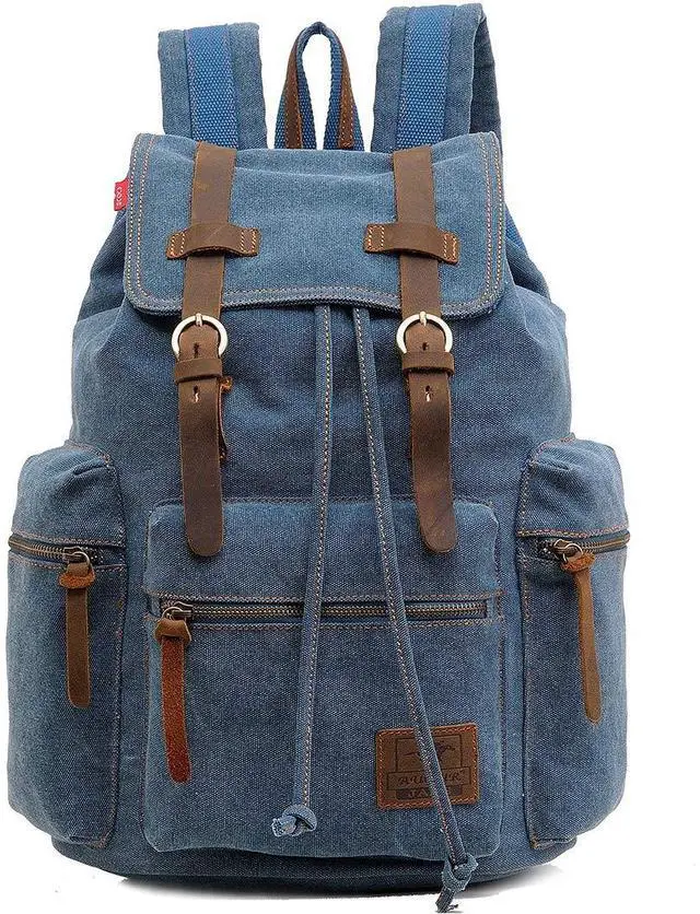 • HuaChen Vintage Canvas Backpack with Leather Accents, Casual Daypack Travel Rucksack for Men Women,School College Hiking Camping M32 Blue