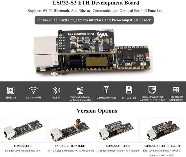 There are several Version Options of this item, this option includes ESP32-S3-ETH board and PoE Module . Please check the Package Content.