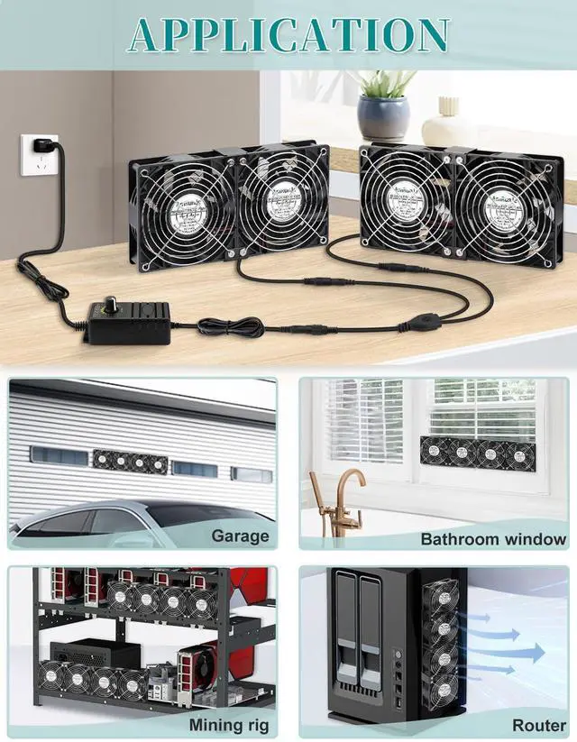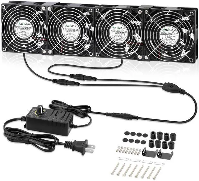 AmRunJe 4 x 120mm Server Rack Fan DC 12V with AC Speed Control 110V 220V 240V, CPU Cooler with Big Airflow for Garage Computer RV Refrigerator Xbox Electronics Cooling Exhaust
