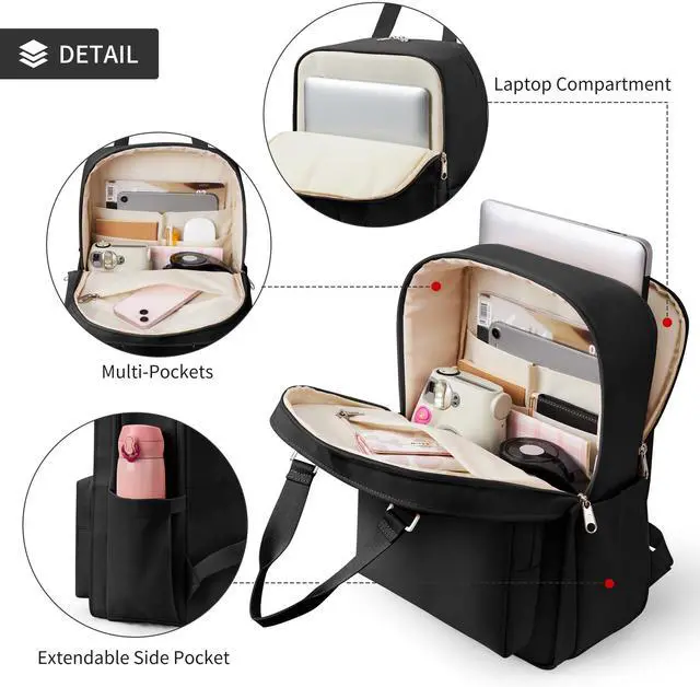 MULTI FUNCTIONS: 2 Elastic side pockets provides convenient access to different size of bottles and umbrellas. Seperate back pocket for laptops or important files. This multipurpose pockets helps organize work supplies significantly enhance work efficiency