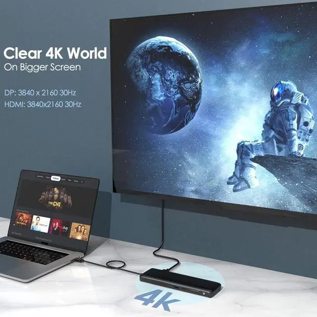 4XEM's Triple Display 4K docking Station has a slim and compact base dock design with high strength cable provides additional durability and good heat dissipation effect. This Docking Station supports triple display under USB-C Video Alternate Mode, with resolution up to 1080p. It will also support 4K@30 fps if the HDMI display is compatible. Besides the display functions it allows you to expand more USB devices with multiple ports. Its Gigabit Ethernet port supports quick uploads and downloads of photos, videos, music and other files. Intuitive installation just Plug & Play, no need for external software driver installation.