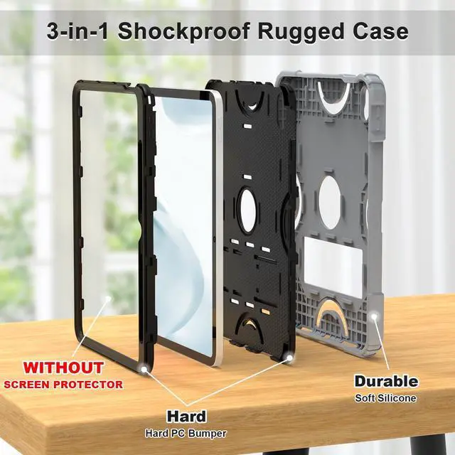 Shockproof Rugged Design: iPad 11th / 10th Case made of durable hard PC+Silicone, 3-layer full-body protective construction protects your iPad 11th/10th gen from scratches, accidental drops, bumps and shocks(NOTE: NO screen protector included)