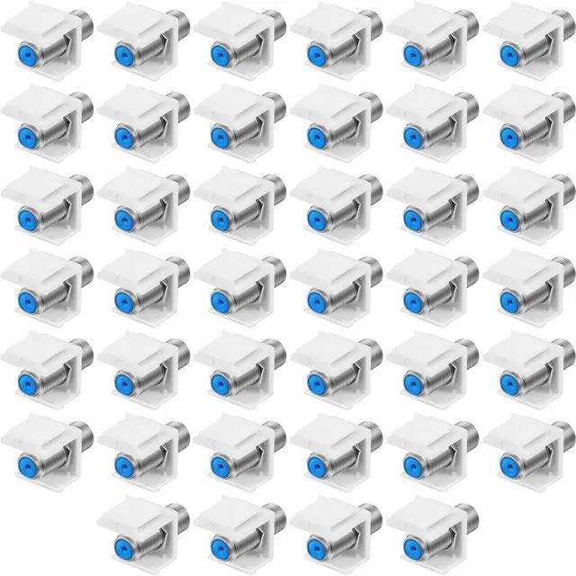 Weewooday 40 Pcs F-Type RG6 Coaxial Cable Connectors, Trapezoidal Keystone Jack Inserts - Blue Inner Core Female to Female Connector, Screw-Type Audio Speaker Trapezoid for Wall Plate (Silver)