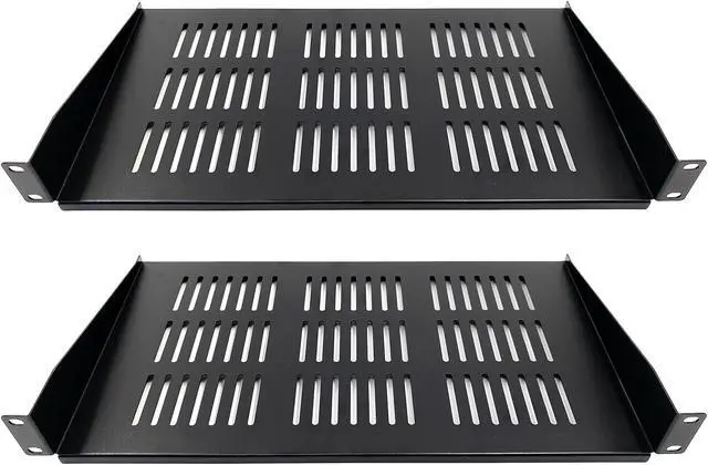 2-Pack 1U Vented Cantilever Shelf, 19 Rack Mount, Durable Steel for Network Equipment, 10" (25cm) Depth, Black