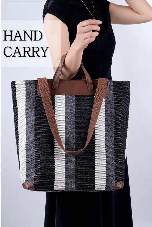 Perfect Work Bag Design This bag offers ample space for a laptop, folders, and office essentials, meeting all your work needs. Its multifunctional design includes a comfortable PU handle and a thickened canvas shoulder strap, allowing both handheld and shoulder-carrying options, ideal for commutes and office use. The stylish color-block design and durable materials ensure a professional yet fashionable look, making it perfect for daily work life.