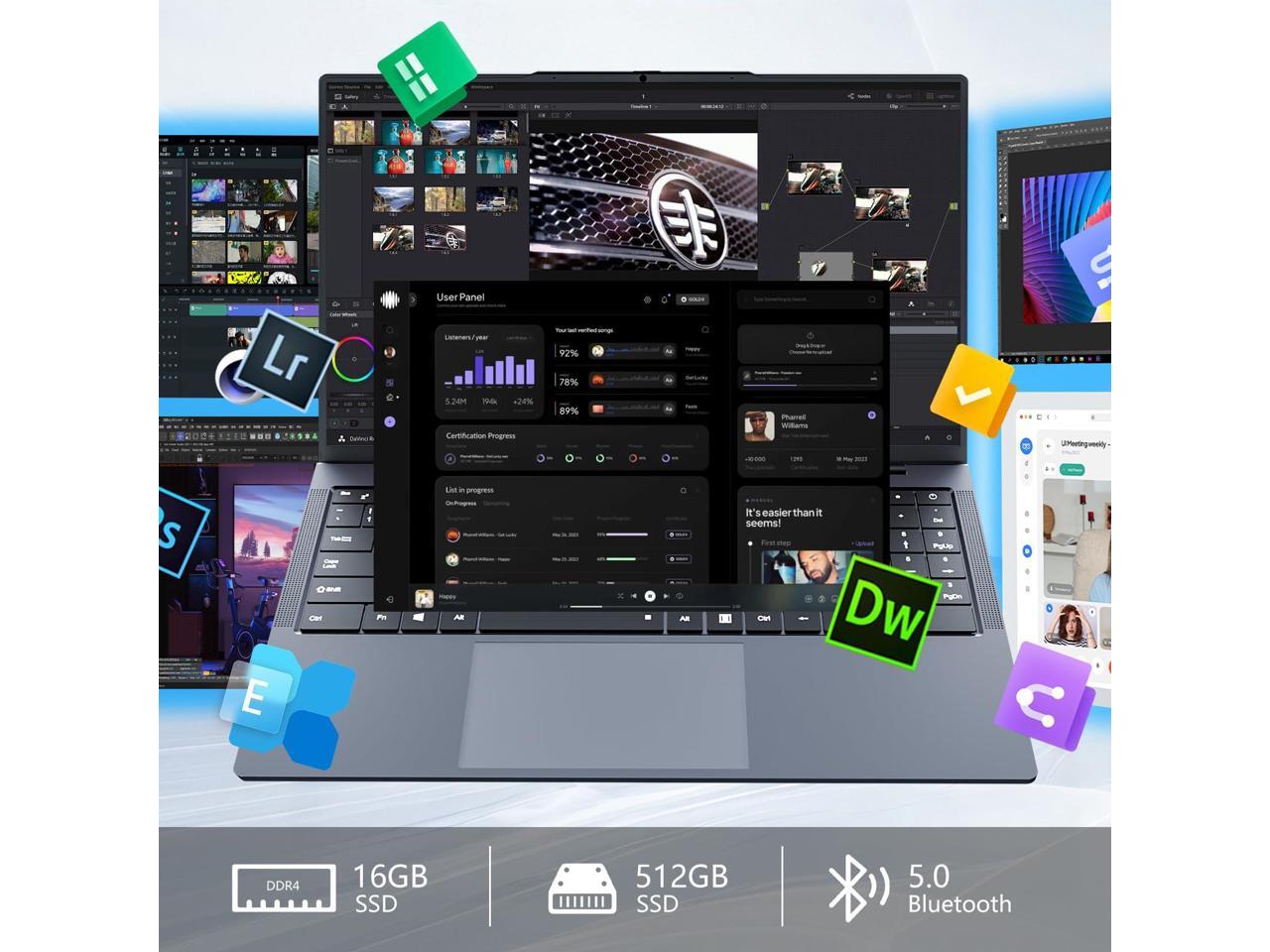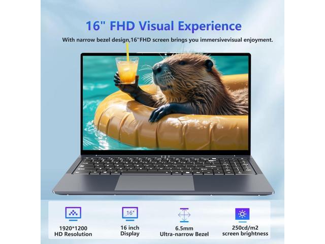 - 16" Full-View HD ScreenEnjoy a vibrant visual experience on the 16 Inch Full HD IPS display with a resolution of 1920 x 1200 pixels.With screen-to-body ratio up to 90%, our laptop has an aspect ratio of 16:10, ratio gives you morespace to watch movies, edit photos, or brows the web.This laptop computer is equipped with a backlit keyboard that illuminates your workspace, making every keystroke precise.