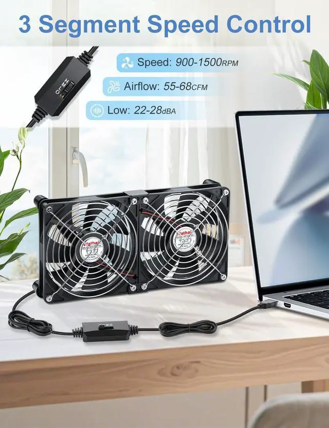 Adjustable 3-Speed Contro: Customize airflow with low/medium/high settings. Perfect USB powered fan for cabinet fan use or computer cooling fan needs