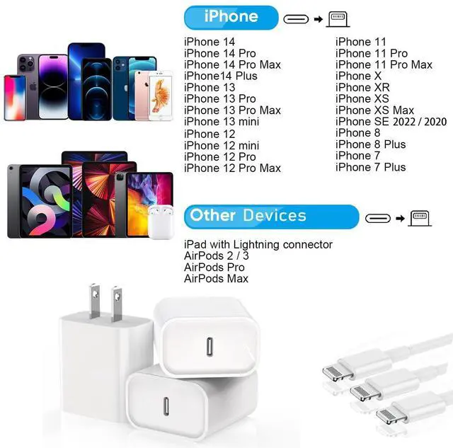 (3-Pack)iPhone 14 charger with 10ft Lightning Cable