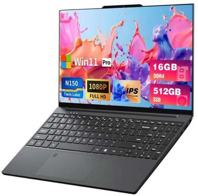 Unleash Unlimited PerformanceThis laptop is equipped with an advanced Twin Lake N150 processor (4C/4T, 6MB cache, up to 3.6GHz), providing enhanced multitasking capabilities and more powerful graphics processing performance. The built-in fingerprint reader on the touchpad eliminates the need to enter a password every time, just a touch. With the Win 11 Pro operating system, allowing you to easily switch applications, process projects, and run productivity tools.