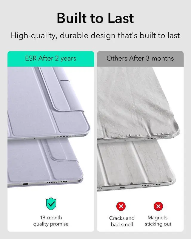 ESR for iPad Air 11 Inch Case M3/M2 (2025/2024), iPad Air 5th/4th Gen (2022/2020), Powerful Magnetic Attachment, Slim Trifold Stand Case, Auto Wake/Sleep, Durable Protection, Light Purple