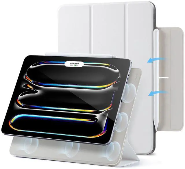 ESR for iPad Pro 11 Inch Case (M5/M4) 2025/2024, Strong Magnetic Attachment, Slim Trifold Stand Case, Supports Pencil Pro and Pencil(USB-C), Tough Protection, Auto Sleep/Wake, Rebound Series, White