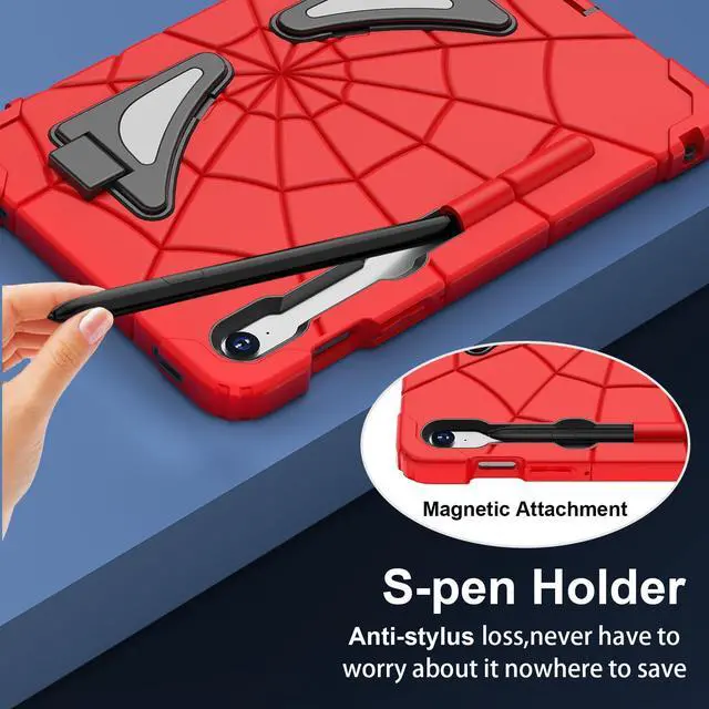 Sturdy Thickness Protection: Spider cute kids case made of 3 layers material, front PC frame and back PC cover and thickned corner silicone that is the best kids case for Samsung Tab S7/S8/S9/FE SM-X710 11 inch2023, effectively decrease the impact from drops or bumps.