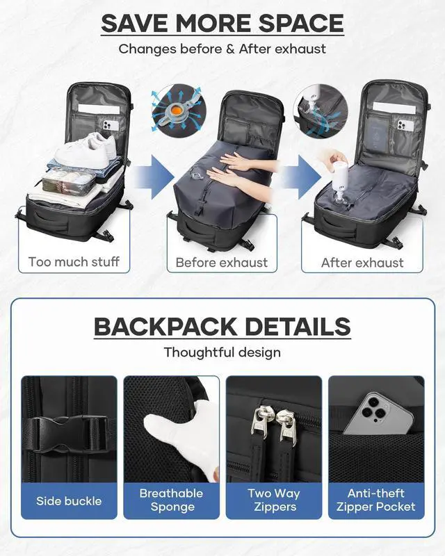 Vacuum Backpack With Pump Large Travel Laptop Backpacks For Women Men Carry On Backpack Airback Backpacks With Vacuum Compression