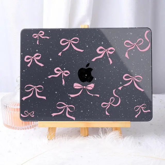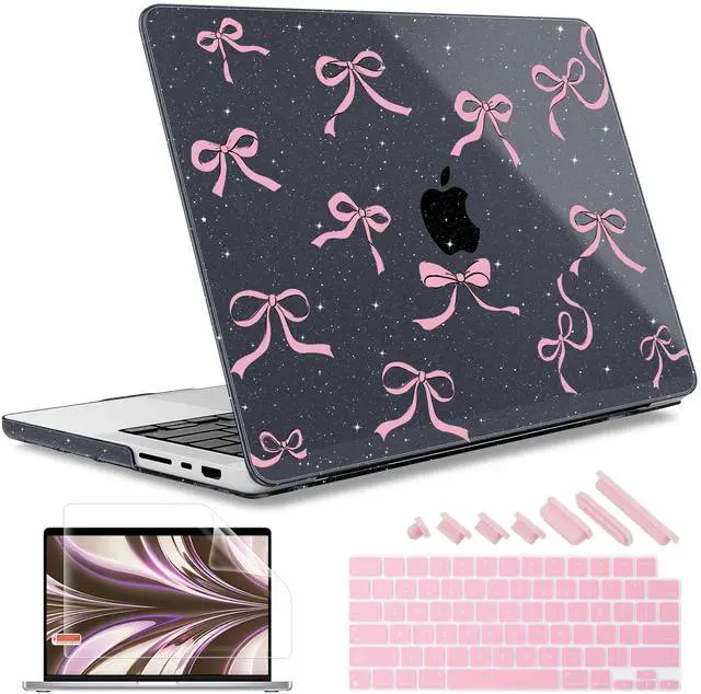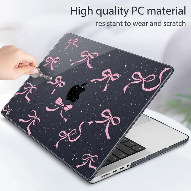 May Chen for MacBook Pro 14 inch M5 M4 M3 M2 M1 Chip, A3434 A3112 A3185 A3401 A2918 A2992 A2779 A2442, 2021-2025 Released, Plastic Hard Hard Cover with Keyboard Cover, Bow Black Glitter