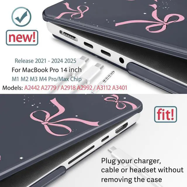 Designed ONLY to be compatible with MacBook Pro 14 inch ( 2021 2022 2023 2024 2025 Release ) Models: A3434 A3112 / A3185 A3112 A3401/ A2918 A2992 / A2779 / A2442 M1 M2 M3 M4 M5 Chip with Liquid Retina display Fits Touch ID. Pls verify Model No. the underside of laptop before buying.