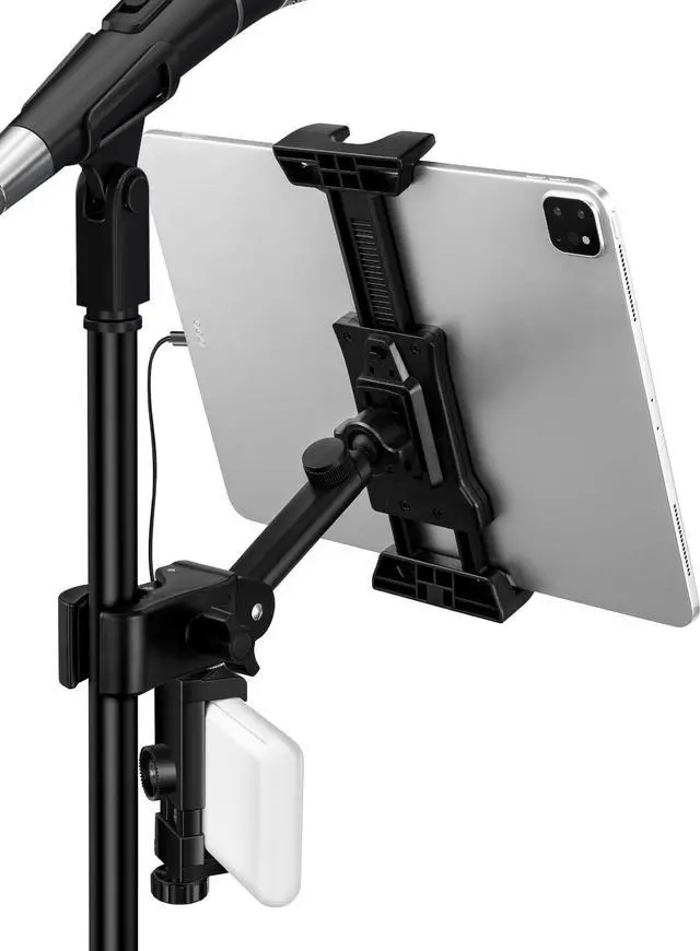 LZSIG Tablet Holder for Mic Stand with Power Bank Clip - Adjustable iPad/iPhone Mount for Music Stand, Compatible with 4.7 - 13.5" Smartphones, Kindle, Android - Outdoor Streaming & Recording