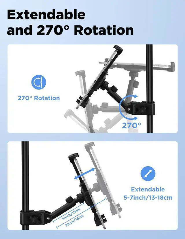 Versatile Compatibility: The tablet & powerbank mount holder for the mic stand is compatible with all 4.7 to 13.5-inch screen tablets and smartphones; such as iPad Pro, iPad Air, iPad Mini, Surface Pro, Galaxy Tab, iPhone 13/14/15/16 series, iPhone 13/14/15/16 mini, 13/14/15/16 pro, 13/14/15/16 pro max and Galaxy S9, S8, S7 Edge, and more (*HOLDER ONLY, Tablet & Powerbank are not included)