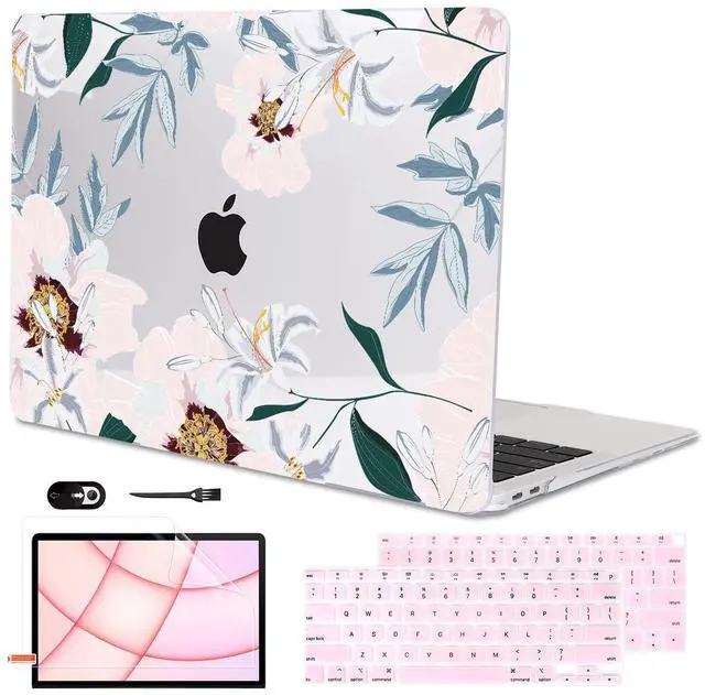 LCMOCICO Compatible with MacBook Air 13 inch Case 2021 2020 2019 2018 M1 A2337 A2179 A1932 with Retina Display & Touch ID, Pattern Plastic Hard Shell Case Keyboard Skin Cover, Pink Peonies & Lilies