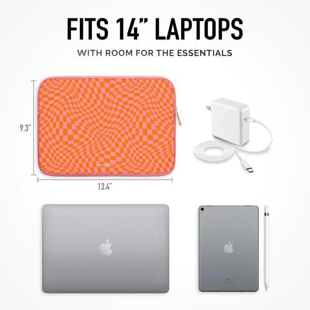 FITS 14 INCH LAPTOPS: Internal Dimensions: 13.1x8.9x0.9 External Dimensions: 13.3x9.5x1 Designed for versatility; this neoprene laptop sleeve 14 inch fits any 14 inch laptop cover; including a MacBook sleeve 14 inch, Dell, Asus, HP 14 inch