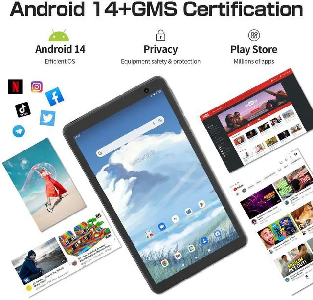 [GMS Certified]: Tablets PC has Google GMS certification and downloads needed apps from the Google Play store, such as Facebook, YouTube, and Netflix. It also comes with a 5000mAh battery for watching videos, working, listening to music and surfing the web with up to 8 hours of battery life.