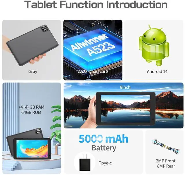 [HD Display]: 8 tablet comes with a 1280 x 800 resolution HD touchscreen, which is large enough to enjoy and view more clear, colorful and vivid content. Also equipped with dual speakers that deliver clear sound for an exceptional audiovisual experience.