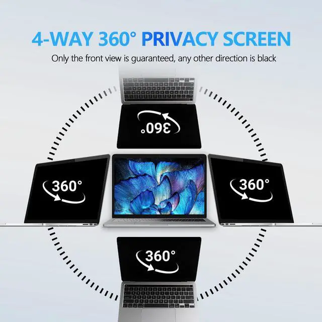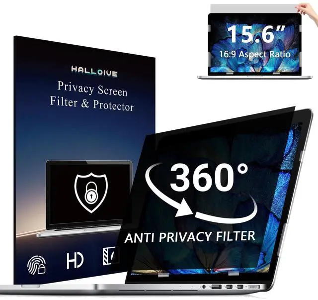 4-Way Laptop Privacy Screen FilterHalloive has upgraded the privacy screen angle, privacy screen laptop 15.6 inch With industry-leading privacy features.It uses revolutionary micro-louver technology. The data is visible only to persons directly in front of the monitorwhile prying eyes beside you see only a black screen.For this point, our protective film has undergone more than 1,0000 angle corrections to ensure that the screen is not visible to people who are not within this range.