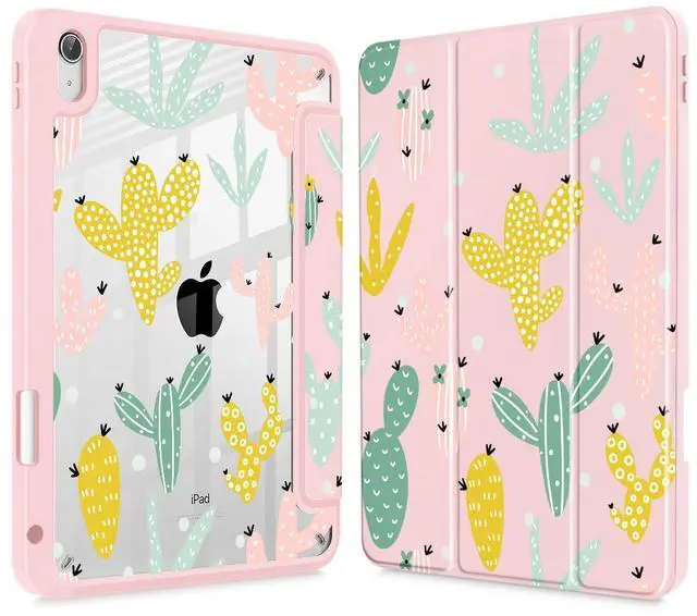 Lepeoac Case for iPad Air 13 Inch (M3) 2025, (M2) 2024 - [Built-in Pencil Holder] Shockproof Cover with Clear Transparent Back Shell, Auto Sleep/Wake Cover, Cute Cacti-Pink