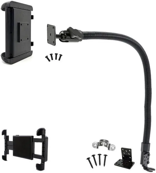 LycoGear ELD Car Floor Seat Rail Tablet AMPS Pattern Mount Holder is the perfect Tablet attachment for your travel needs. STRONG AND STURDY MOUNT This tablet holder for your car/truck/Fleet/Limo features Strong Adjustable design 24 inch aluminum post (Additional Rod Secure Kit is included). 360° ROTATABLE MOUNT With the swivel ball joint, you are able to see your device from any angle WORKS WITH CASES No need to remove your Tablet case since this mount features an adjustable side clamp. DEVICE COMPATIBILITY Apple iPad Pro ( 12.9, 11, 10.5 & 9.7 inch), iPad air 2 3 4 5 /iPad 12 11 10 9 8 7 6 /iPad mini, Surface Pro Slate, Samsung Galaxy Tab.