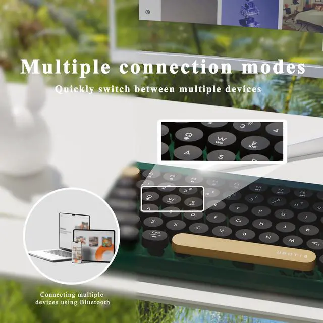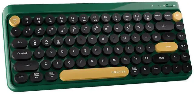 FCPLU x UBOTIE Wireless Bluetooth TKL Keyboard with 84 Retro Round Keycaps, Typewriter-Style, for PC/Mac/Tablets(Dark-Green Colorful)
