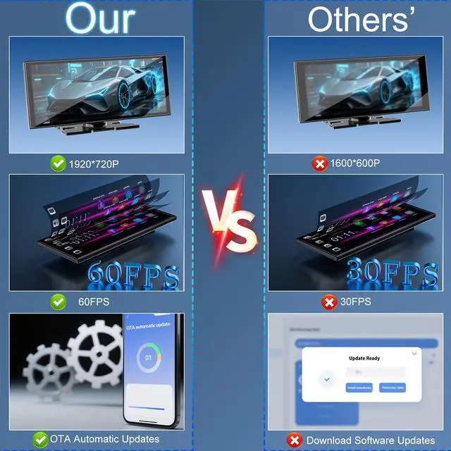 1920×720 HD + 60fps + 2.5D Curved Screen No more blurriness or lag! 1920×720 resolution shows tiny text clearly, while 60fps ensures smooth swiping. The 2.5D curved car play screen resists sun glare and feels sleek to touchlike a mini theater on the go.