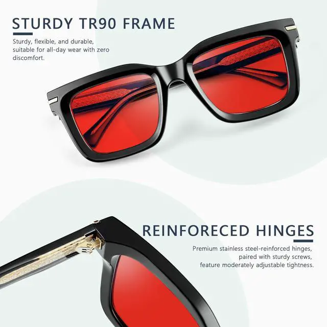 TR90 Material - The classic and stylish square TR90 thick frame is not only unbreakable but also flexible, making it comfortable and safe to wear for extended periods.