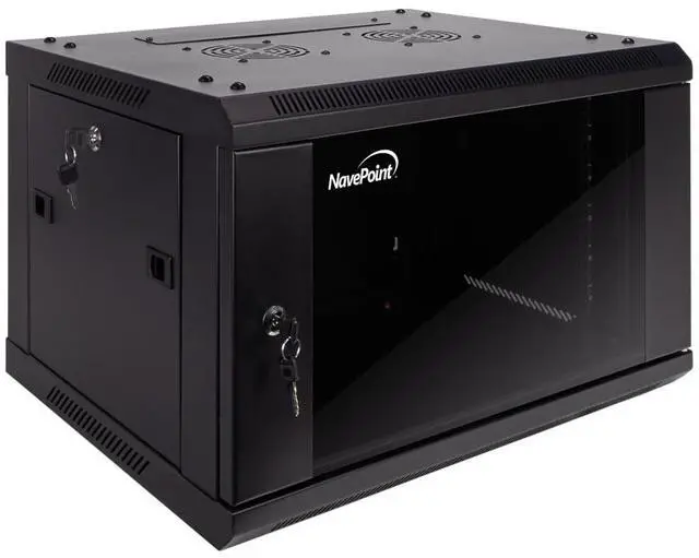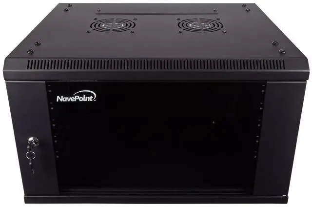 NavePoint 6U Server Cabinet Wall Mount Rack Enclosure Includes 2 Fans, Locking Glass Door, Removable Side Panels 6U Network Cabinet 17.7 Deep, 19 Inch Server Rack for IT and A/V Equipment