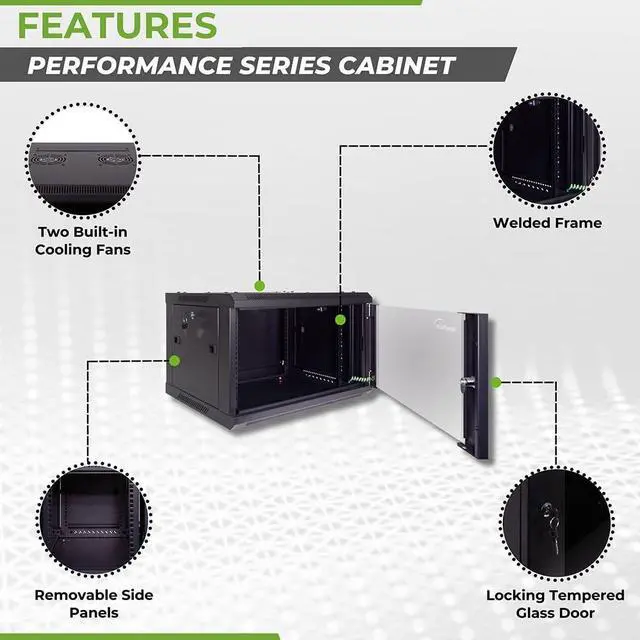 DURABLE - Crafted from cold-rolled steel with a protective black powder coating, the 6U NavePoint Performance Series network cabinet provides sturdy, reliable housing for network and server equipment. Capable of supporting up to 130 lbs, it's an ideal, durable solution for installers working on long-term projects.
