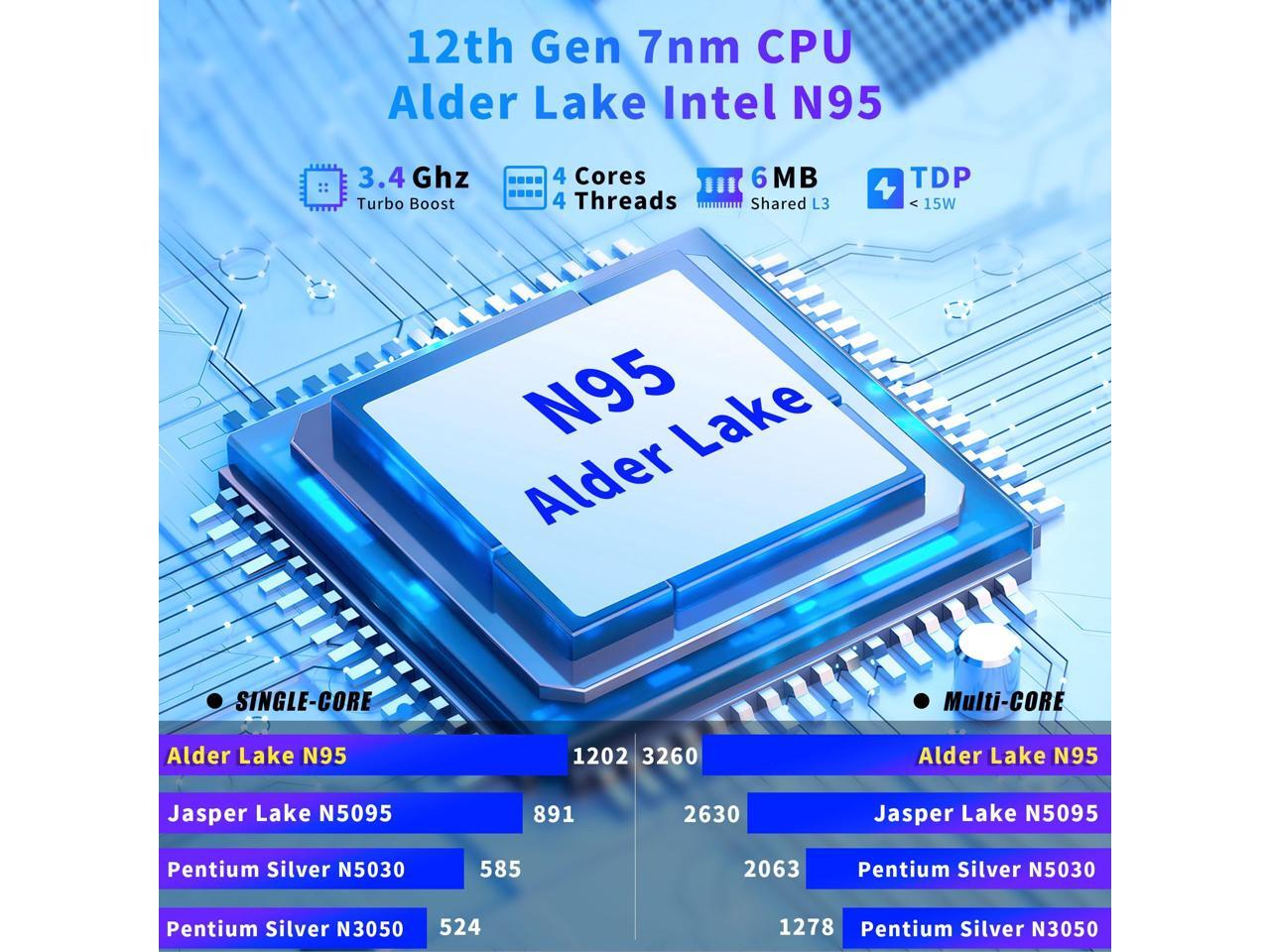 - Powerful ProcessorEquipped with Intel 12th Gen Celeron N95 processor (4 cores, 4 threads, frequency up to 3.40GHz, L3 Cache: 6 MB) and integrated Intel UHD Graphics (up to 750MHz). Allow Efficient multitasking with Windows 11 pro system. Powerful and faster than normal processors on the basic frequency.