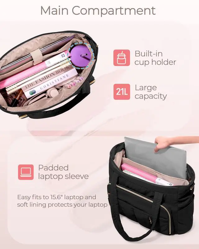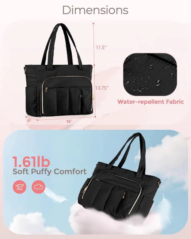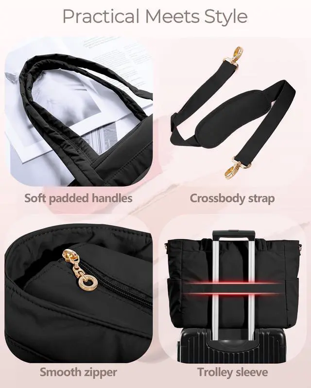 • : Clean puffer tote design looks cute and holds up to daily use, ready for the office, travel days, or weekends away.