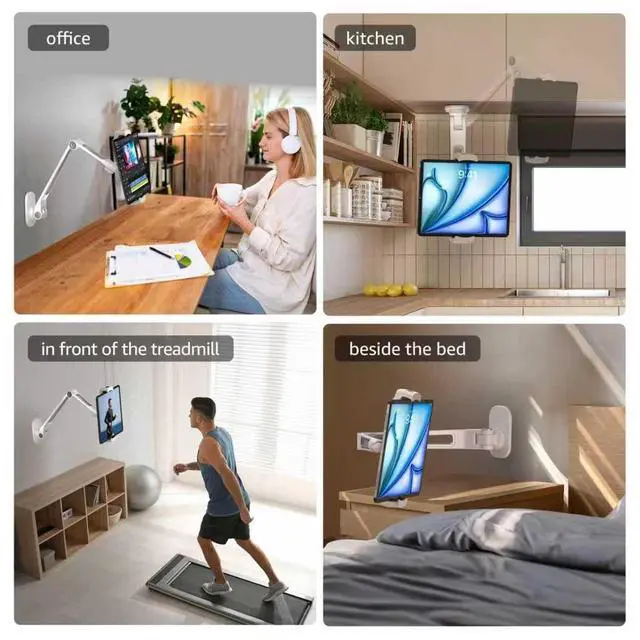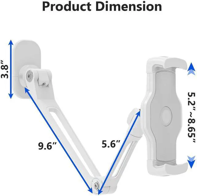[Strong & Sturdy]The tablet wall mount arms were made by aluminum alloyand clamp and base is made of high quality ABS materialsWhich is very strong and stable without bending risk.