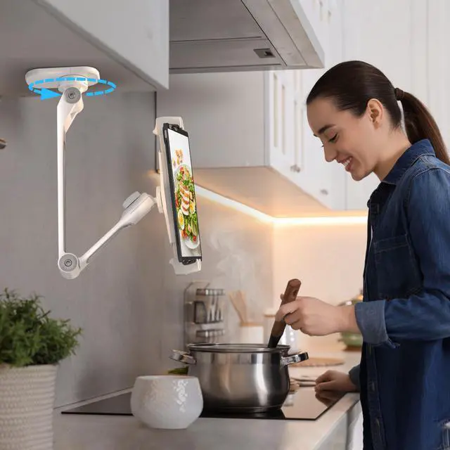 ergoiuon Tablet Wall Mount, iPad Wall Mount Holder Suit for 4.7 - 12.9I nch Tablets, Aluminum Alloy, 360°Swivel Base, Flexible Angle Adjustable, Tablet Mount (White)