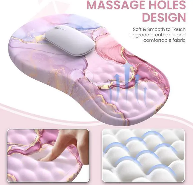 Massage Design: Mouse and keyboard pad gaming has a bumpy massage bead design, promoting healthy blood flow Strengthen the air circulation between wrist and mouse pad set Fits the hand better, avoids prolonged use of stuffiness